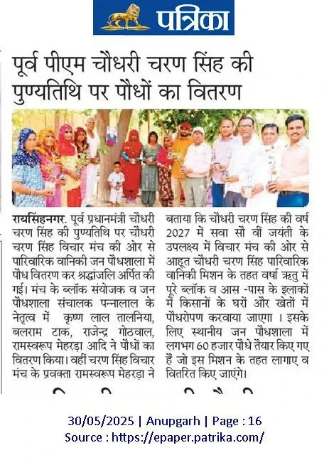 With the launch of the Chaudhary Charan Singh Familial Forestry Mission on 29th May 2025—marking Chaudhary Sahib’s death anniversary—we have resolved to count as many plantations as possible under this initiative.