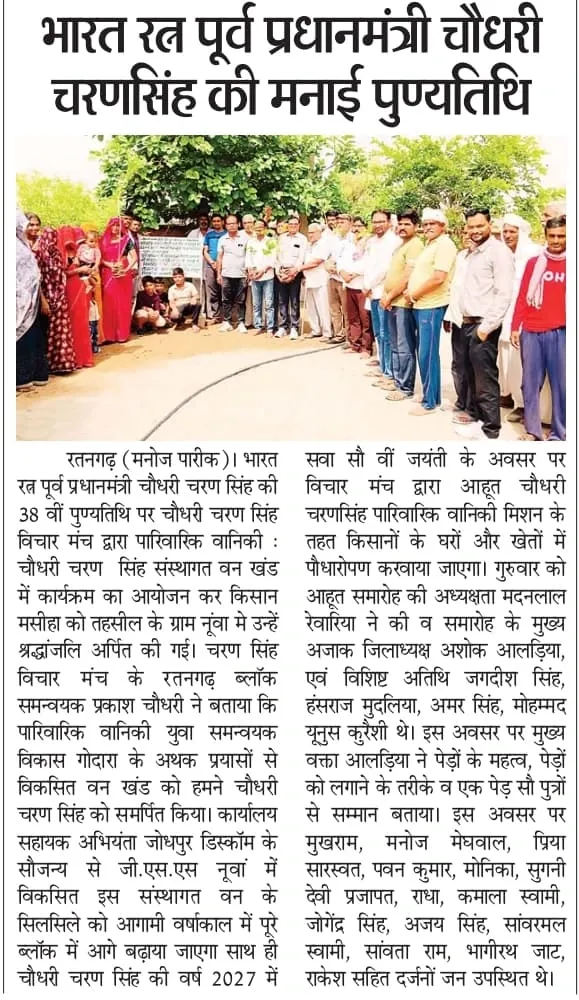 With the launch of the Chaudhary Charan Singh Familial Forestry Mission on 29th May 2025—marking Chaudhary Sahib’s death anniversary—we have resolved to count as many plantations as possible under this initiative.